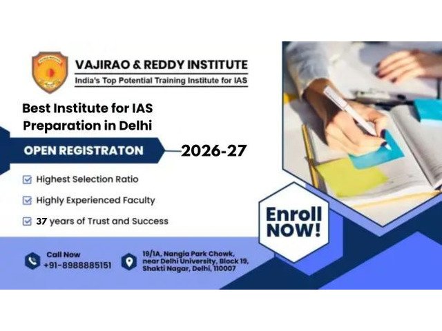 Vajirao and Reddy Institute is the Top IAS coaching institute in Delhi for IAS Preparation. Vajirao is known for producing consistent results and high-quality guidance. Vajirao and Reddy IAS coaching centers are renowned for expert faculty, structured study material, and comprehensive prelims/mains coaching and located in Shakti Nagar Delhi.