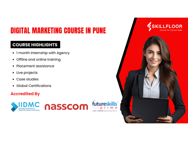 Skillfloor offers the best digital marketing course in Pune, designed to equip you with job-ready skills and industry-recognized certifications. The course covers SEO, SEM, social media marketing, Google Ads, email marketing, and analytics, all taught by experienced professionals. With a strong focus on hands-on learning through live projects, Skillfloor ensures you gain practical experience alongside theoretical knowledge. Whether you're a student, working professional, or entrepreneur, the flexible learning options and personalized career support make Skillfloor an ideal choice.