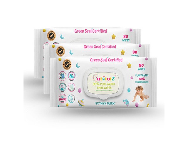 CutetotZ® Premium Organic Baby Wet Wipes | Green Seal® Certified | Pack 03 (80 Wipes)
