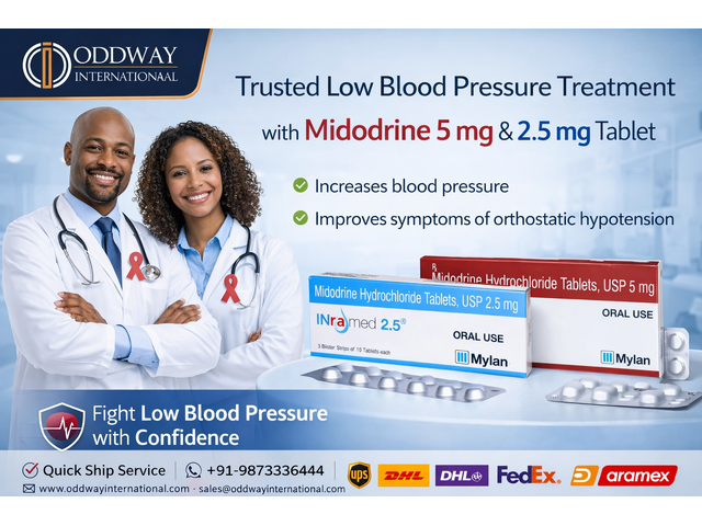 Oddway International is a leading B2B pharmaceutical exporter offering Midodrine 5 mg in bulk and wholesale quantities to pharmacies, hospitals, and distributors across the Philippines with reliable supply and competitive pricing.