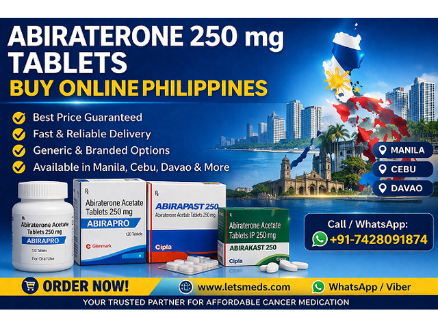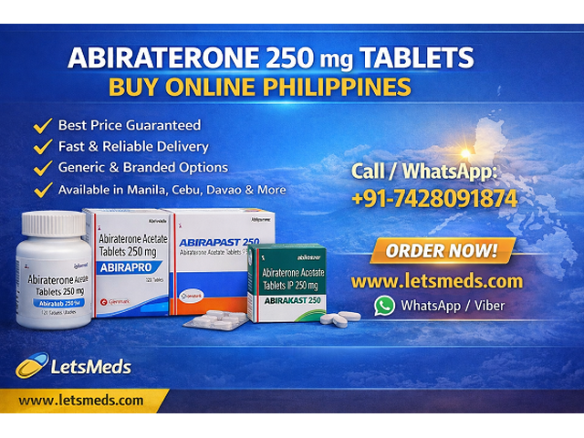 LetsMeds Pharmaceuticals provides affordable and high-quality generic medicines, making Abiraterone 250 mg price Philippines accessible for patients seeking cost-effective treatment. You can easily buy Abiraterone 250 mg online with secure ordering and reliable delivery across the Philippines, Thailand, and worldwide. Whether you're searching for where to buy Abiraterone acetate in Metro Manila, Cebu, Davao, Bangkok, or Phuket, LetsMeds ensures fast and hassle-free shipping. With competitive Abiraterone acetate 250 mg price, convenient ordering via WhatsApp or Viber +91 7428091874, and trusted customer support, LetsMeds is your reliable healthcare partner. Visit here: https://www.letsmeds.com/