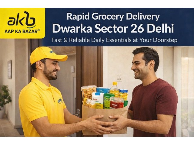 Enjoy quick grocery delivery in Dwarka Sector 26 Delhi with Aapkabazar. Simple ordering and fast service.
