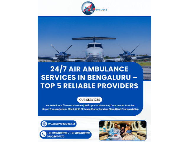 Looking for the top air ambulance services in Bengaluru for emergency patient transfer? We help you connect with trusted and reliable 24/7 air ambulance providers equipped with advanced ICU facilities for safe and fast medical transportation.