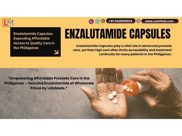 Enzalutamide 40mg Capsules are available in the Philippines through LetsMeds Pharmaceuticals, offering a reliable and competitively priced supply with fast nationwide delivery. Customers across Metro Manila, Cebu, Davao, Quezon City, and other regions can conveniently order Enzalutamide online and receive secure, well-packaged delivery right to their doorstep. LetsMeds ensures authentic, high-quality products sourced from trusted manufacturers, supported by transparent pricing and responsive customer assistance. For inquiries, quotations, or orders, contact LetsMeds via WhatsApp/Viber at +91-7428091874 for quick support and seamless delivery across the Philippines.