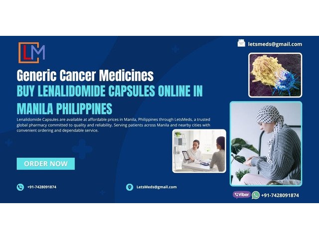 Lenalidomide Capsules are available in Manila, Philippines through LetsMeds, a trusted global pharmacy offering affordable pricing and reliable access to quality-assured medicines. Patients searching for Lenalidomide Capsules Philippines, Lenalidomide price in Manila, or options to buy Lenalidomide online in the Philippines can rely on LetsMeds for authenticity, secure packaging, and dependable international delivery. With convenient ordering, dedicated customer support, and shipping services covering Metro Manila and other major cities, LetsMeds ensures a safe and hassle-free experience for patients seeking genuine Lenalidomide Capsules at competitive prices.