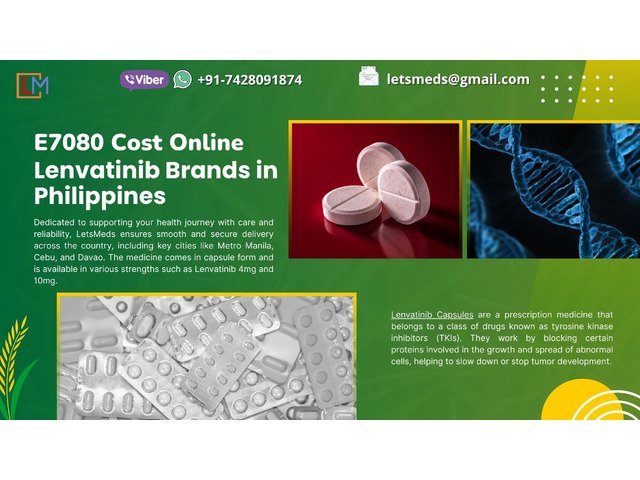 Buy Lenvatinib Capsules online in the Philippines at affordable prices with LetsMeds Pharmaceuticals, your trusted source for genuine and high-quality medicines. We supply cost-effective Lenvatinib from reputable manufacturers, ensuring safety, authenticity, and reliability for every order. With nationwide delivery covering Metro Manila, Cebu, Davao, and Quezon City, patients can easily access this essential treatment without overpaying at local pharmacies. LetsMeds guarantees a simple ordering process, fast dispatch, and responsive customer support to make your experience smooth and stress-free. For more details or to place an order, contact us on WhatsApp/Viber: +91-7428091874 or WeChat/Skype: LetsMeds.