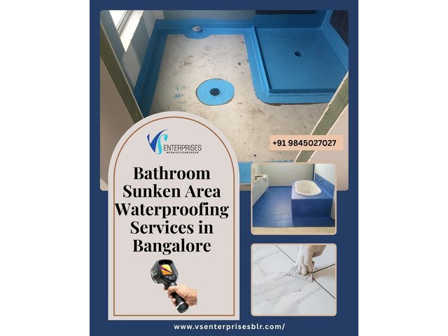 VS Enterprises offers professional bathroom sunken area waterproofing services in Bangalore, providing permanent solutions for hidden leakage problems. We effectively address bathroom ceiling seepage caused by water penetration through sunken slabs. Our experienced waterproofing contractors use advanced methods, including high-quality tile grouting and specialized waterproofing treatments, to seal joints and prevent future leakage. With careful inspection and precise application, we ensure complete protection without unnecessary tile removal. Whether for apartments or independent houses, we deliver durable, reliable, and cost-effective bathroom waterproofing solutions that keep your spaces dry, safe, and damage-free.