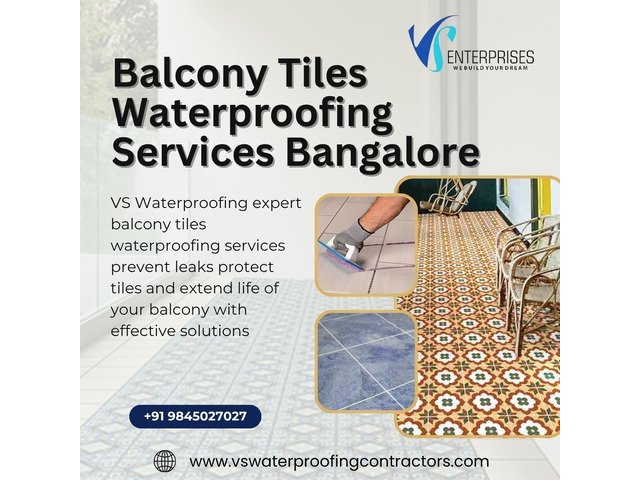 VS Waterproofing Contractors provides durable balcony tile waterproofing services in Bangalore, ensuring lasting protection against seepage and structural damage. We specialize in identifying hidden leaks, sealing tile joints, and applying advanced waterproofing coatings that prevent water ingress and tile deterioration. Our services include crack filling, grout protection, membrane coating, and complete balcony waterproofing solutions tailored to every surface condition. Choose trusted experts to protect your balcony and enhance its durability. Contact us today for a quick inspection and an effective waterproofing solution.