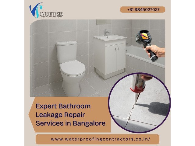 VS Waterproofing provides expert bathroom leakage repair services in Bangalore with advanced solutions that ensure long-lasting protection. we specialize in sealing cracks, preventing moisture seepage, and strengthening weak surfaces with high-quality materials. Our team handles epoxy grouting, tile joint sealing, and seepage repair to eliminate dampness and leakage from pipelines, floors, and walls. Using proven techniques and premium coatings, we deliver durable, leak-proof bathrooms for homes, apartments, and commercial spaces. With years of experience and professional application methods, we ensure reliable waterproofing results across the city. When you need skilled waterproofing contractors in Bangalore, count on us for fast service, guaranteed quality, and effective bathroom leakage solutions.