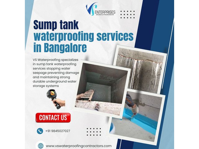 VS Waterproofing Contractors delivers reliable sump tank waterproofing services in Bangalore, ensuring strong protection against leakage, dampness, and structural damage caused by water seepage. We, specialize in advanced waterproofing solutions using high-quality materials and proven techniques that enhance durability, maintain water hygiene, and extend the lifespan of sump tanks. Our services include crack sealing, internal waterproof coatings, joint treatment, leakage repair, and preventative waterproofing designed to safeguard residential, commercial, and industrial sump tanks efficiently. Protect your water storage system today by choosing trusted experts who ensure lasting results, professional service, and dependable waterproofing solutions you can rely on. Contact us now.