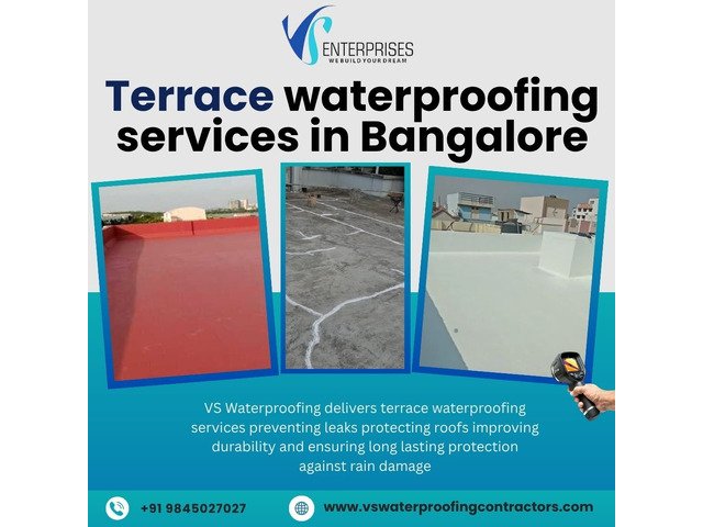 VS Waterproofing Contractors provides professional terrace waterproofing services in Bangalore, protecting buildings against rainwater leakage, cracks, heat damage, and long-term structural deterioration. We deliver customized waterproofing solutions using advanced membranes, chemical coatings, and expert application methods that ensure durability, energy efficiency, and superior weather resistance. Our services include terrace leakage repair, crack filling, waterproof coating application, heat reflection treatment, and preventative maintenance suitable for homes, apartments, and commercial properties. Secure your terrace today with experienced waterproofing specialists who guarantee lasting protection and peace of mind. Connect with our team now and experience reliable terrace waterproofing solutions.