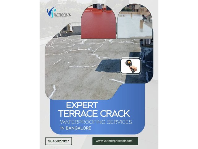 VS Enterprises provides expert terrace crack waterproofing services in Bangalore, offering effective solutions to prevent water leakage and structural damage. Our skilled waterproofing contractors specialize in terrace floor crack filling and repair, using advanced materials and proven techniques to seal cracks permanently. We carefully assess the condition of the terrace to identify weak points and apply the right waterproofing treatment for long-lasting results. By stopping seepage at an early stage, we help protect your building from dampness and costly repairs. We offer reliable, durable, and cost-effective terrace crack waterproofing services across Bangalore.