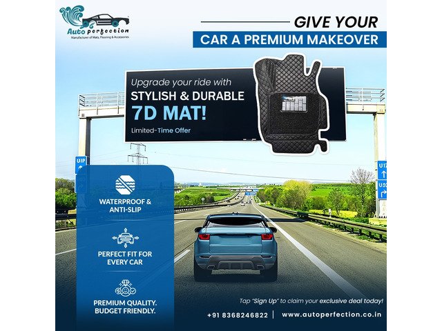 Upgrade your drive with AutoPerfection’s premium 7D car floor mats — perfectly tailored for your vehicle. Experience superior comfort, waterproof protection, and a stylish premium finish. Shop now for custom-fit luxury mats in India.